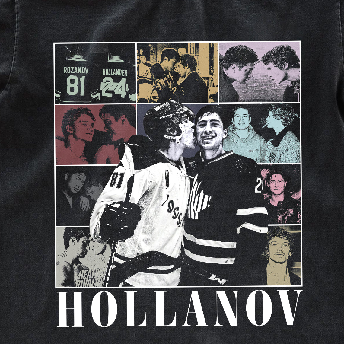 Hollanov Vintage Bootleg Fan Tee | Heated Rivalry Photo Grid Shirt | Dark Washed Hockey Romance Book Merch