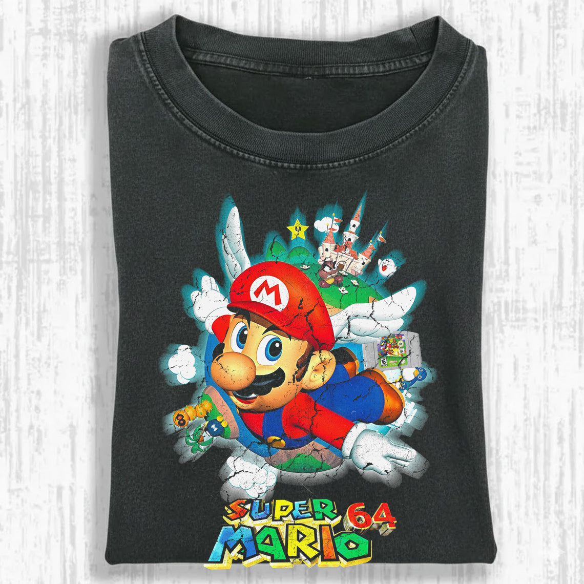 Super Mario 64 Vintage Fan Graphic Tee | Nintendo N64 Gaming Gift Shirt | Dark Washed Retro Gamer Tee